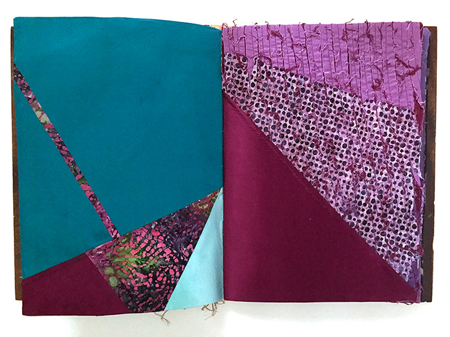 Maintaining the high quality traditions of handmade books of the past is important to me. In recent years, I have replaced handmade paper with hand-woven and vintage textiles. These textiles are innately tactile and relatable: Fabric pages are not flat and completely blank. Each stitch adds texture and dimension. The fabric moves and molds itself in the hands of the reader.