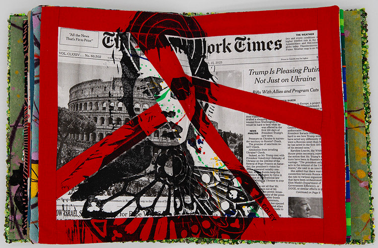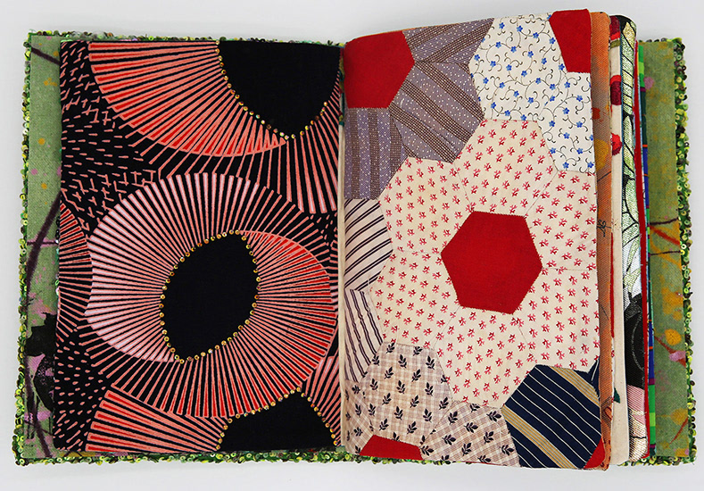 "The interplay between my book's exterior and interior positions it as a space of productive contradiction and ongoing dialogue. The embroidered cover aligns with the European traditions of refinement and ornamentation, whereas the interior champions resourcefulness, innovation, and resilience characteristic of African American quilting practices.