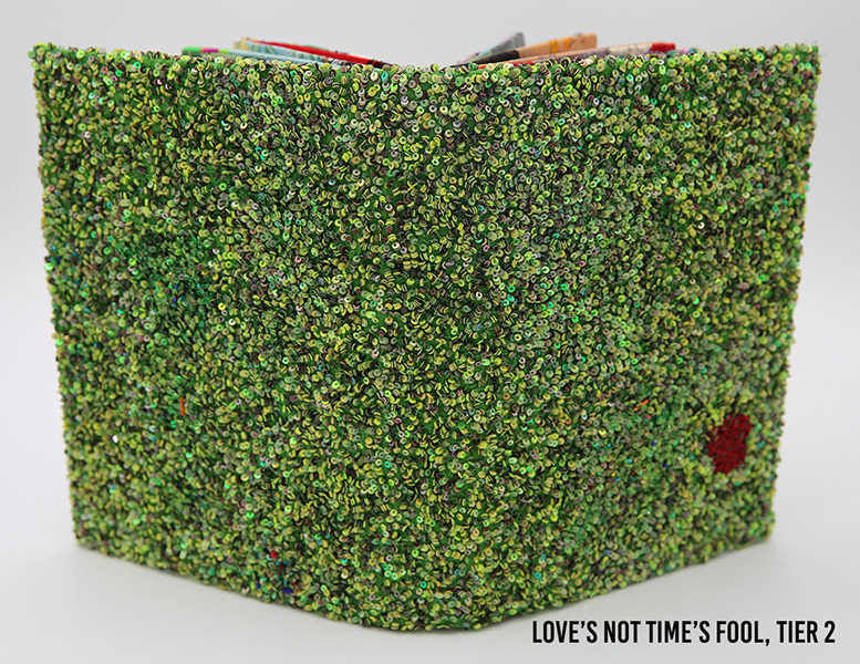 "Reading together, my covers and pages assert that Shakespeare's sonnets are not static relics of the canon. They are living texts, capable of being re-stitched into new material contexts. My books unfold as both homage and critique, insisting that the canon can be simultaneously adorned and unsettled, bound in fine luxurious threads and stitched from fragments."